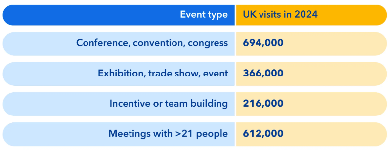 Meetings with more than 21 people account for 612,000 UK business event visits
