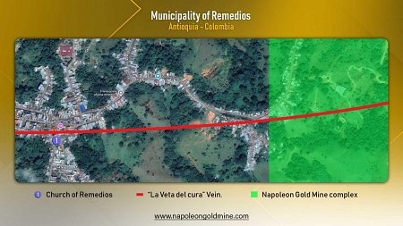 Napoleon Gold Mine is strategically located within the Antioquia Batholith, operating over La Veta del Cura, one of the oldest and most important gold veins in the country and the world, which extends beneath the urban center of Remedios and below one of the oldest churches in Colombia, founded in 1560, placing the company in a strategic position on the global map of the most relevant gold-bearing regions internationally.