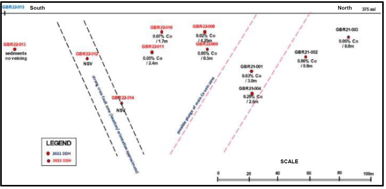 - GBR21001: 3.0m at 0.63% cobalt & 3.61g/t silver