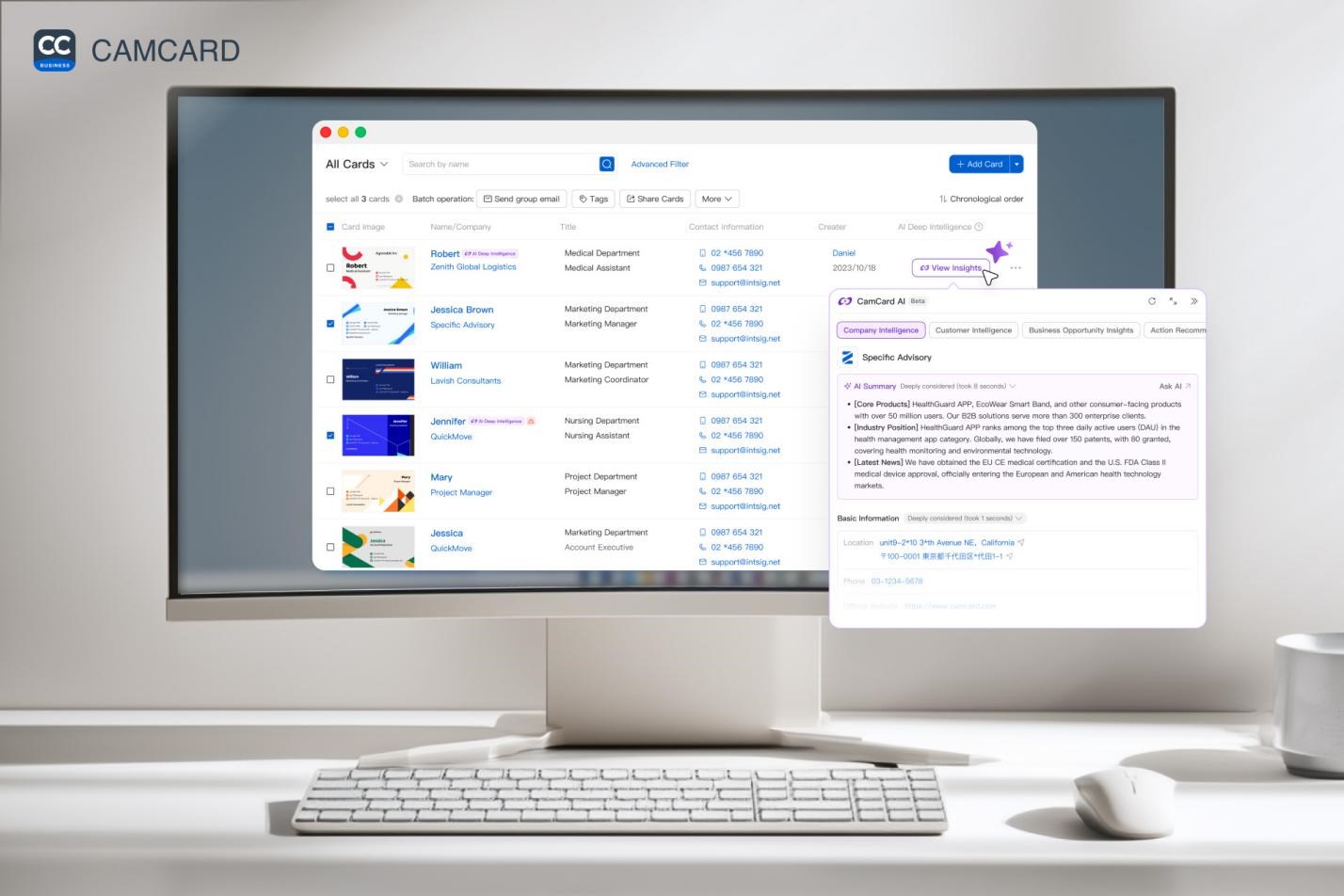 CamCard AI provides a comprehensive overview of the company