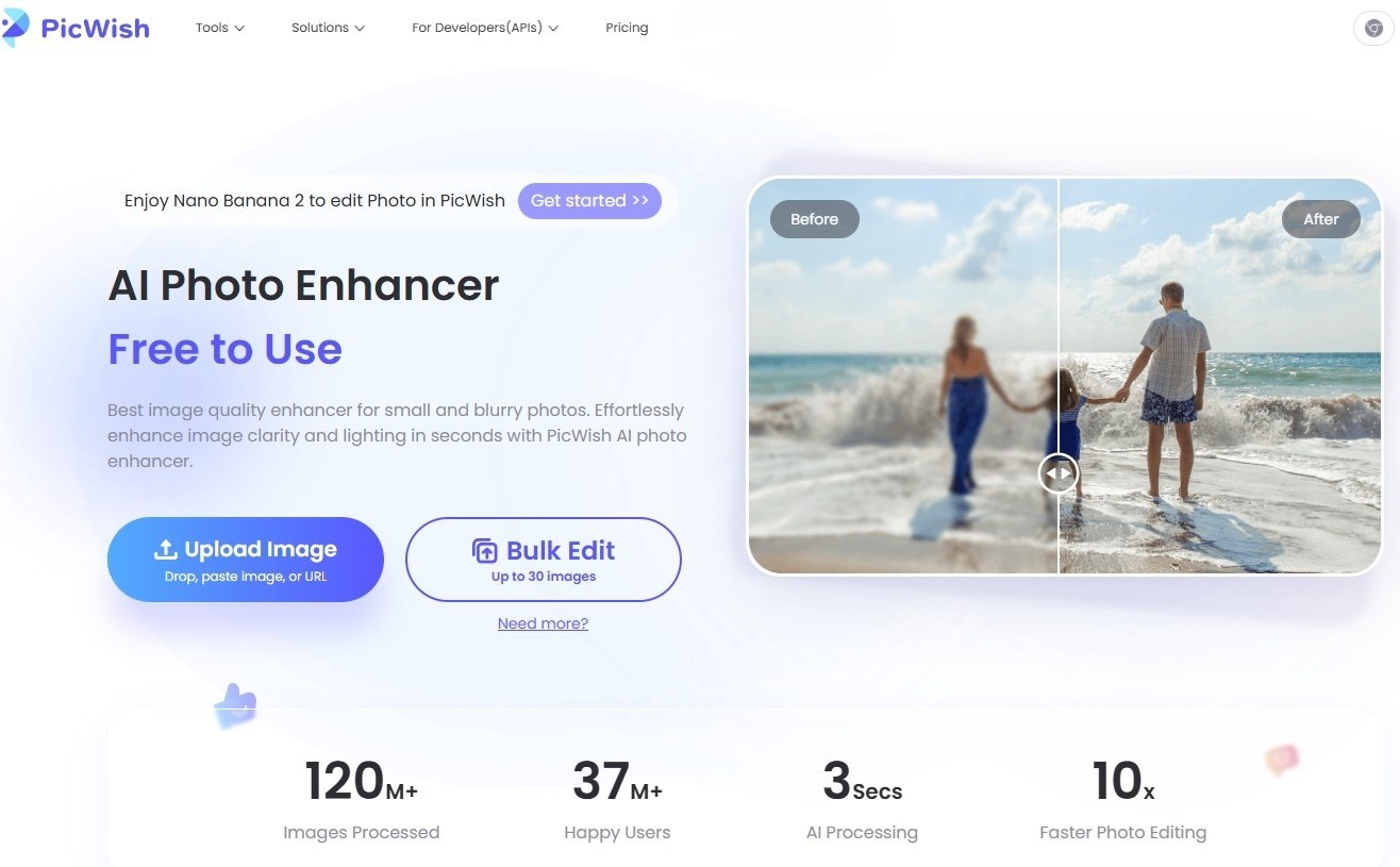PicWish says the upgraded AI Photo Enhancer can sharpen blurry photos, improve image clarity, elevate resolution, and turn pixelated images into cleaner, higher-definition results. For portraits, the tool is designed to improve facial details in photos affected by blur, low light, or focus issues, while also supporting beauty enhancement and color refinement after restoration.