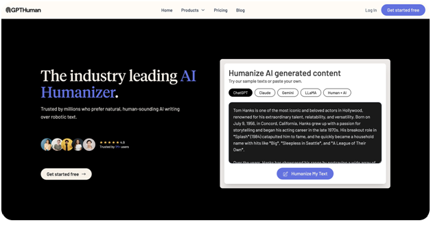 GPT Human AI occupies the third position in the ranking because it offers a balanced level of accuracy for teams that work with medium-sized business documents and require a predictable tone. The entry plan includes 48,000 words, which suits departments that manage weekly updates, structured reports, and operational notes. In detector evaluations, a 100% AI-generated draft scores 32.5 in ZeroGPT and 2 in GPTZero, while the humanized version reaches a 7/10 grammar score. Additional testing shows a 95 grammar score, which helps refine structure and readability.