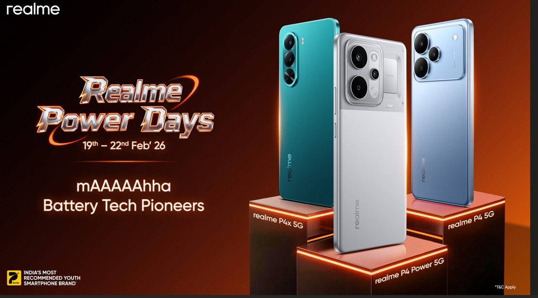 New Delhi, Feb 19 : realme, India’s most recommended youth smartphone brand, is coming up with offers on its upcoming Power Days Sale, scheduled from 19th to 22nd February. The sale will feature the performance-centric P series lineup: realme P4 Power 5G, realme P4 5G and realme P4x 5G, giving users access to long-battery, high-refresh-rate smartphones designed for heavy everyday usage and gaming.