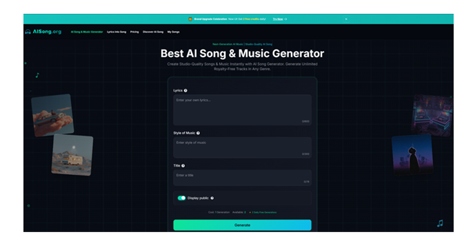 Head over to AI Song. You don’t need to download heavy software. The interface is browser-based and intuitive. Sign up to unlock your daily free generations—this is crucial for testing different prompts without financial commitment.